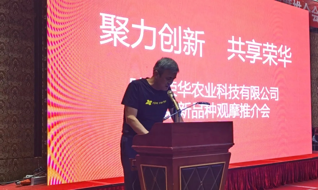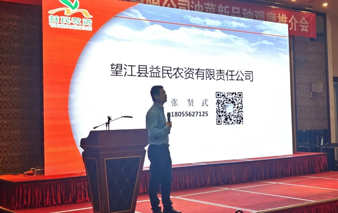 望江縣農(nóng)業(yè)農(nóng)村局陶博士致辭,充分肯定了榮華公司推廣的油菜品種對(duì)望江油菜產(chǎn)業(yè)發(fā)展的作用。