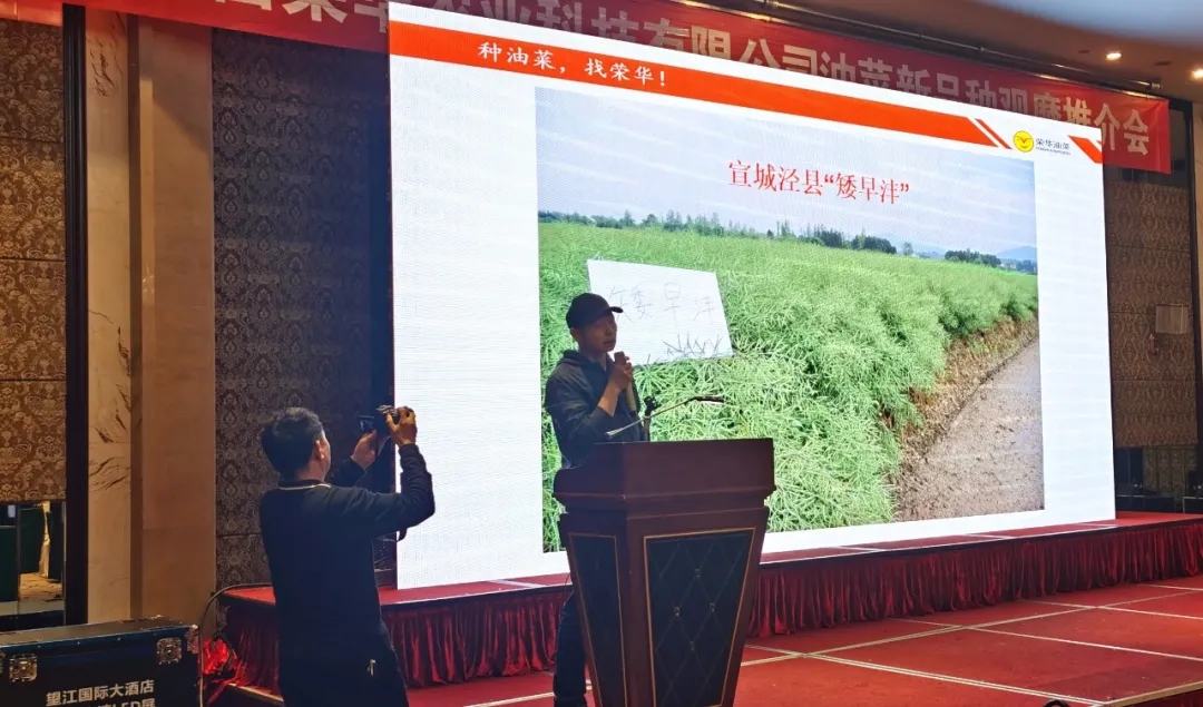 本次推介會(huì)隆重發(fā)布了6個(gè)油菜新品種:“矮早灃”是早熟矮桿耐病耐肥抗倒油菜新品種,適宜區(qū)域?yàn)殚L(zhǎng)江流域。“秦優(yōu)1618”是大角大粒高產(chǎn)高油強(qiáng)抗倒油菜新品種,適宜區(qū)域?yàn)辄S淮、長(zhǎng)江和春油菜區(qū)。“秦優(yōu)DK4”是早熟抗倒高油高產(chǎn)抗根腫病油菜新品種,綜合農(nóng)藝性狀突出,適宜區(qū)域?yàn)殚L(zhǎng)江流域。“神農(nóng)油828、華灃油738”是高產(chǎn)、高油、高抗類雜交油菜新品種,適宜區(qū)域?yàn)殚L(zhǎng)江流域。“寧R201”抗磺酰脲類除草劑,可有效應(yīng)對(duì)田間自生辣菜危害,它不僅僅是抗除草劑品種,產(chǎn)量高、含油量高、抗倒性很強(qiáng),登記區(qū)域?yàn)榻K冬油菜區(qū),目前正在擴(kuò)區(qū)長(zhǎng)江中、下游區(qū)。這批新品種豐富了榮華油菜現(xiàn)有品種結(jié)構(gòu),大大擴(kuò)展了榮華油菜品種的使用功能,增強(qiáng)了廣大經(jīng)銷商合作的信心,對(duì)進(jìn)一步提升榮華油菜品種市場(chǎng)競(jìng)爭(zhēng)力,保證公司持續(xù)發(fā)展將產(chǎn)生重要的作用,會(huì)議取得圓滿成功!