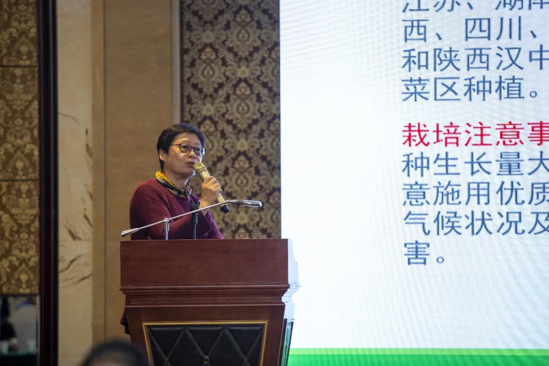 榮華公司研發(fā)部李冬肖研究員介紹了公司自主選育的“神農(nóng)油828”、“華灃油738”及江蘇省農(nóng)科院選育的除草劑油菜新品種“寧R201”參試表現(xiàn)與主要特點(diǎn)。