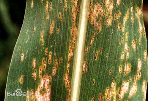 癥狀 玉米銹病是我國華南、西南一帶重要病害。主要侵染葉片,嚴重時也可侵染果穗、苞葉乃至雄花。初期僅在葉片兩面散生淺黃色長形至卵形褐色小膿疤,后小皰破裂,散出鐵銹色粉狀物,即病菌夏孢子;后期病斑上生出黑色近圓形或長圓形突起,開裂后露出黑褐色冬抱子。